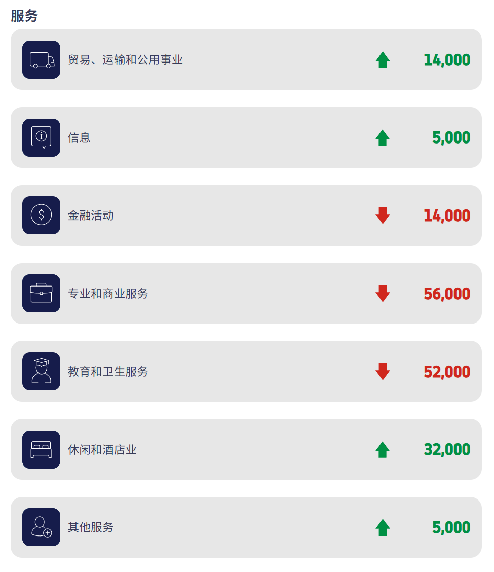 数据显示,6月份服务行业就业岗位减少了6.6万个,主要集中在专业和商业服务,以及医疗和教育领域。相比之下,制造业、建筑业和采矿业的就业岗位有所增加。中小型企业的就业人数也出现下滑。